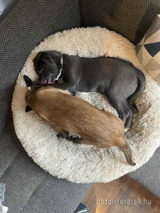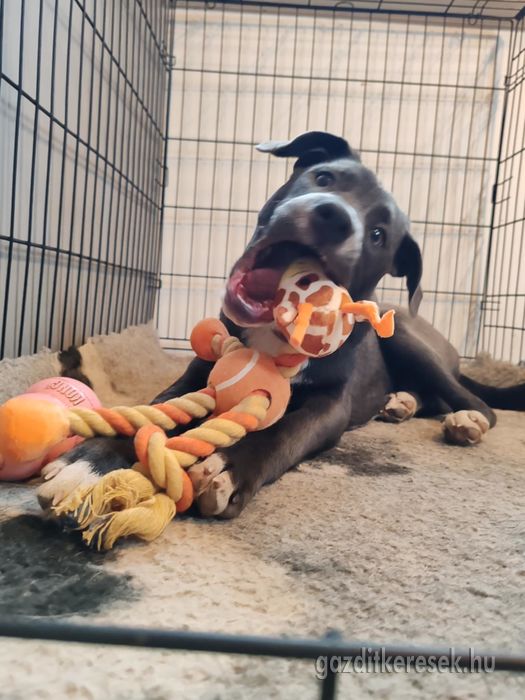 Rio kb 4,5 hónapos staffordshire terrier jellegű keverék kiskutya. Oltott, ivartalanított, parazitamentesített.