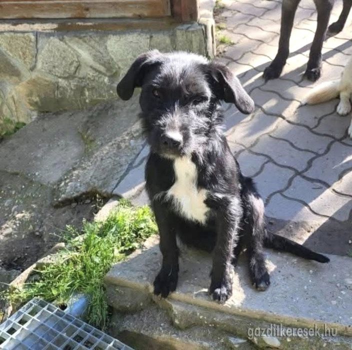 Gazdája meghalt, hat kutya maradt utána. Egy állatbarát befogadta őt, egészségét rendbe tette (hatalmas elhanyagolt sebe volt), ivartalaníttatta. Egy év körüli szuka kutyus, aki imádja ill. imádná a foglalkozást, de a család három gyereke és három befogadott kutyája mellett sok idő nem jut rá. Szökni kezdett, elfoglalni magát.