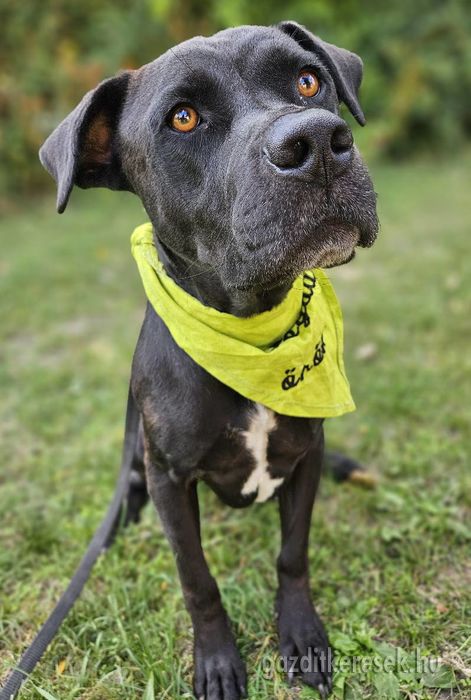 Dante 1,5 éves, oltott, chippezett, ivartalanított szívféregmentes kanocska. Nagyon okos, ragaszkodó. Kajamotivált, imádja a pocakját, ezáltal könnyen tanítható. Járt kutyasuliban, hogy minél jobban felkészüljön a jövőre, ami remélhetőleg egy boldog, kutyához méltó életet tartogat a számára. Az ül, fekszik parancs, illetve a behívás is jól megy már, egyre ügyesebb. Kutyákkal odafigyeléssel összeszoktatható, de kerítésen keresztül szereti megmutatni ki a fönök. Cicákkal nem volt tesztelve, de valami azt súgja, hogy nem kedvelné őket.