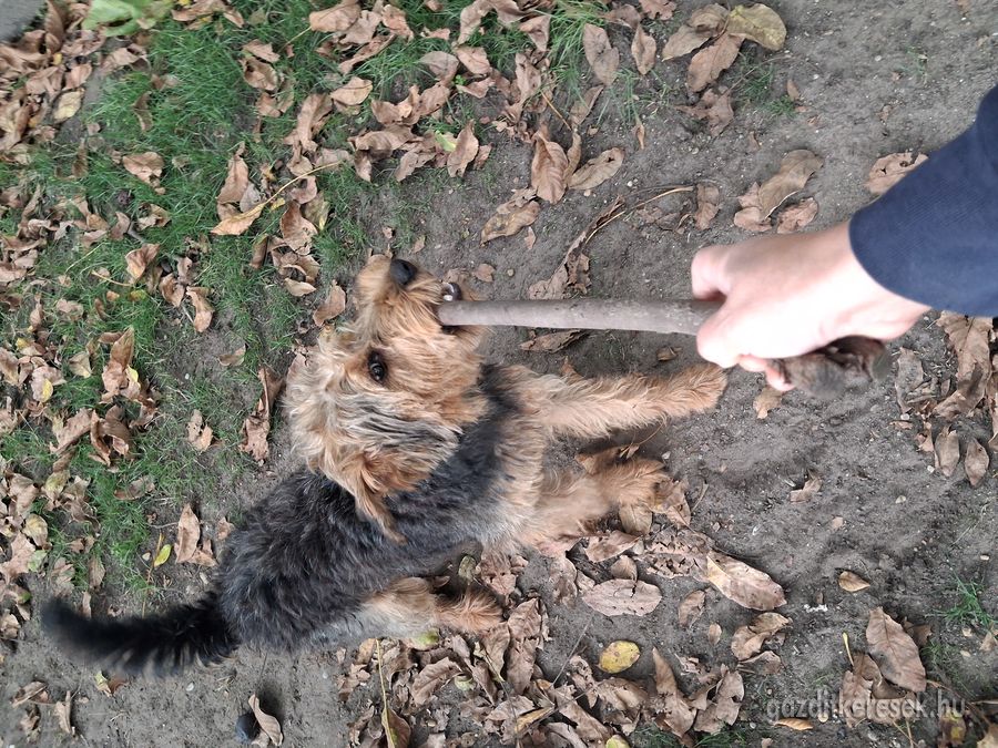 Nagyon barátságos, játékos kutyus. Anyja jag terrier, apja valószínűleg foxi. Minden oltása meg van. Kertes házban ajánljuk, jelenleg kinti kutyus. Ingyen elvihető, de kizárólag olyan személynek, aki tisztában van a "foxi"fajta jellemével és ahol a megfelelő mozgasigényt biztosítani tudják számára.