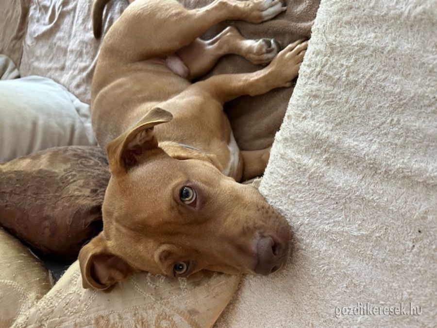 Mentett kutyusként került hozzám Kisvárdáról. Megváltozott élethelyzet miatt keresek neki új szerető családot. Imád a kanapén nagyokat aludni de a kertben is szeret „házörzősködni” és madarat kergetni persze esélytelenül. Barátságos, nyitott természetű, kifejezetten társaságkedvelő, aktív kutyus. Szeret labdázni, játszani. Más kutyákkal is jól kijön, sőt szeret nagyokat játszani velük, emberekkel és gyerekekkel is kedves, játékos. Szobatiszta. Mentett cicákkal nem sikerült az összeszoktatás, ezért cicamentes otthonba ajánlott. Séta közben pórázon kicsit húz.